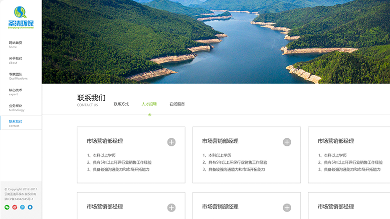 網(wǎng)站設(shè)計總體的色調(diào)延用VI運用標(biāo)準(zhǔn)色,banner以“天人合一,創(chuàng)建圣潔清新之地”為使命,打造“自然保護(hù)區(qū)生態(tài)恢復(fù)”為主題,留住用戶第一印象,增強品牌形象,另外導(dǎo)航欄在左側(cè)顯示,力求在視覺上打破傳統(tǒng)的方式,給人眼前一亮的感覺。